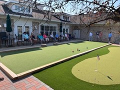- Access to recreation areas that include a fitness center, library, activities studio, club room, outdoor courtyard with gazebo, bocce court and putting green.